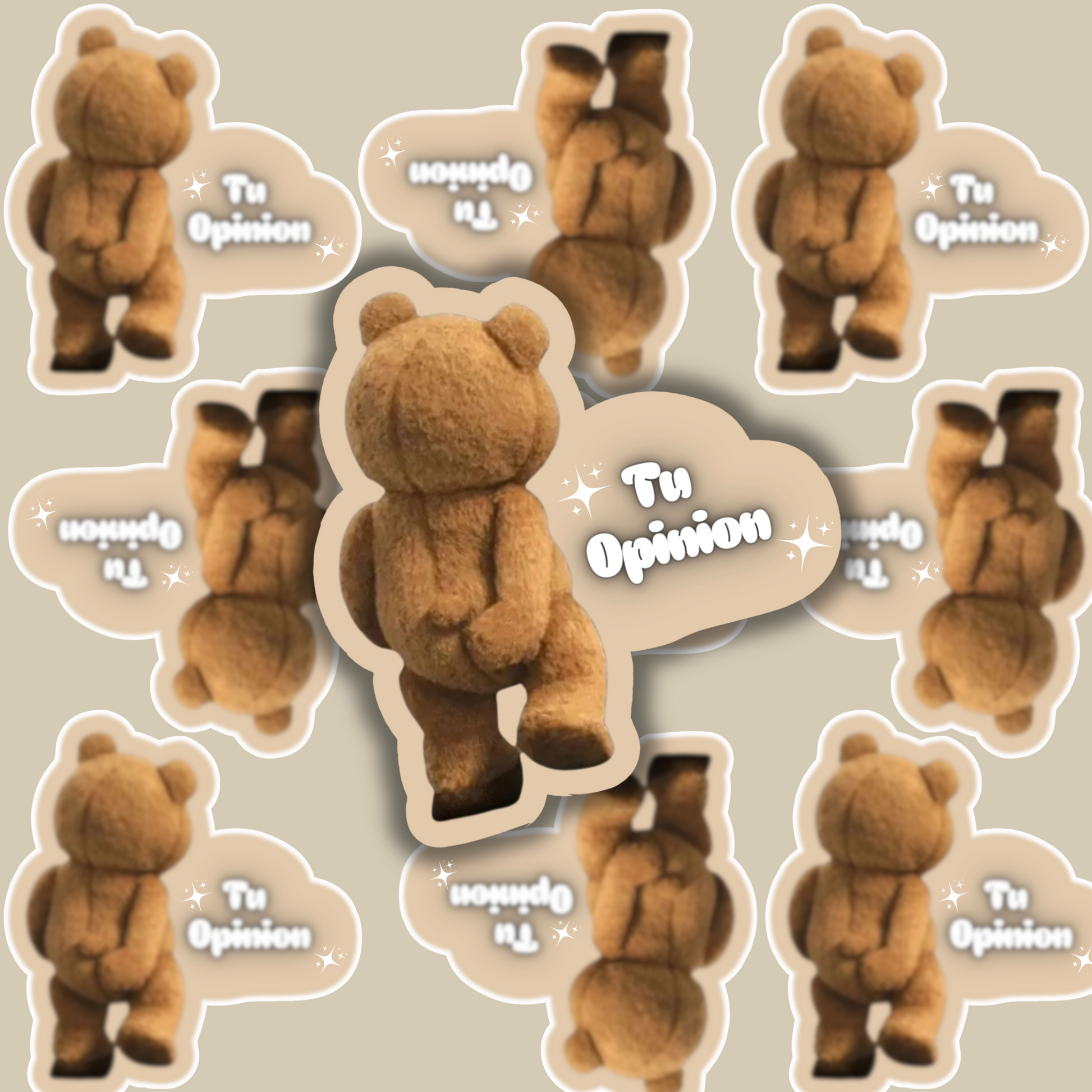 Express your quirky personality with the Tu Opinion sticker, featuring a super adorable teddy with a sassy attitude. Add some fun to your belongings with this unique sticker.